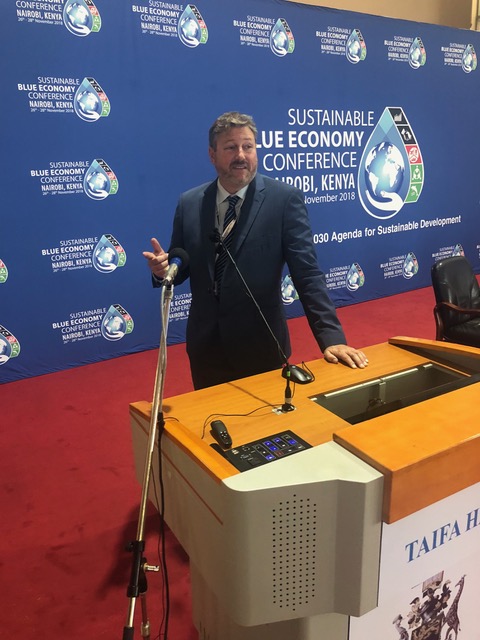 The attached images are of me speaking recently at Nairobi University in Kenya. I was invited by the United Nations to attend the African Blue Economy Summit in Kenya to help contribute to the master framework that will manage Africa’s oceans for the next several generations.
